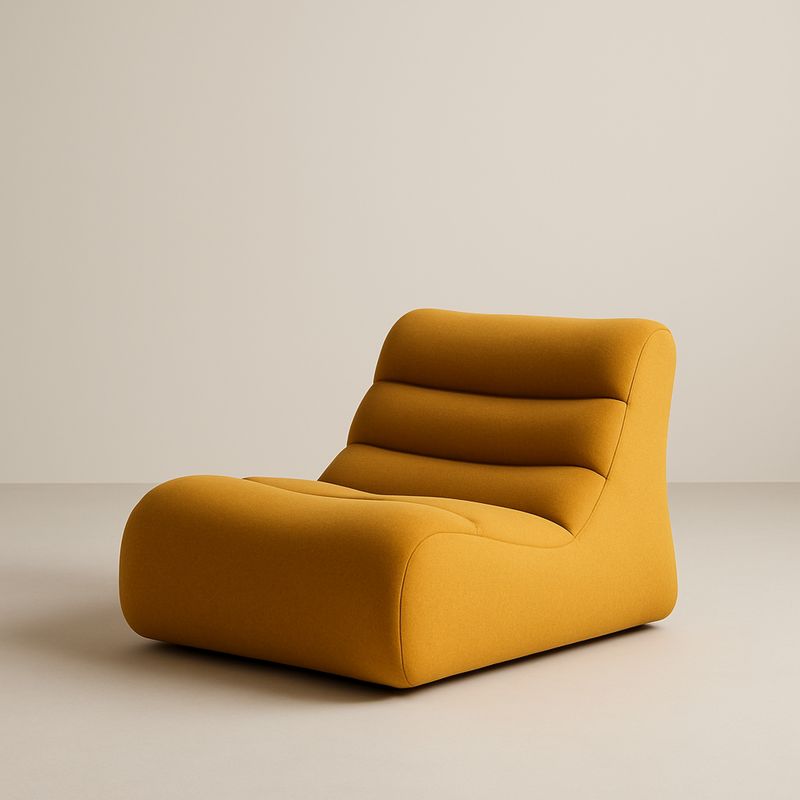 Ten wygodny fotel w musztardowym kolorze zapewnia komfortowy odpoczynek dzięki miękkim poduszkom.